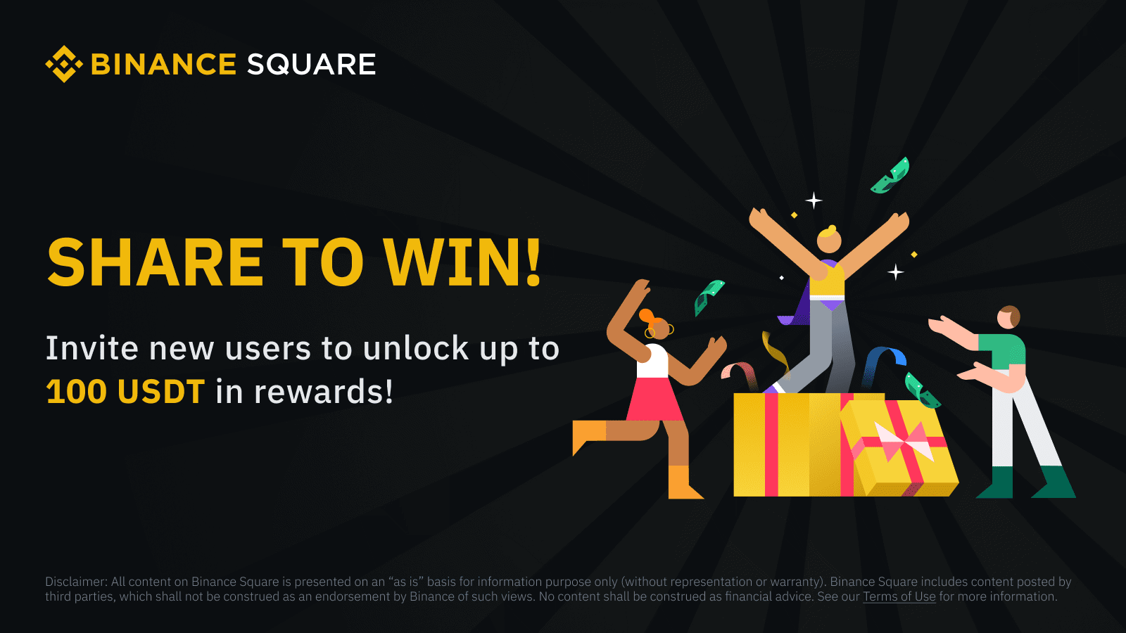 Binance Square is pleased to introduce a new “Share to Win” activity, where verified users may participate to unlock over 100 USDT in rewards.