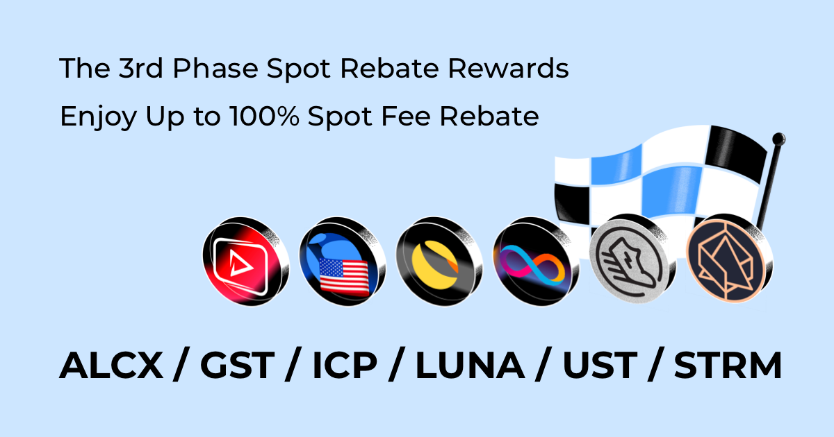 The 3rd Phase Spot Rebate Rewards, Trade ALCX/GST/ICP/LUNA/UST/STRM, Enjoy Up to 100% Spot Fee Rebate
