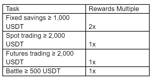 Complete the tasks below and get random rewards, we will draw 2,000 participants to share 50,000 USDT Battle bonus.
