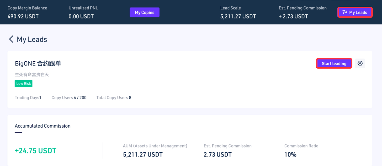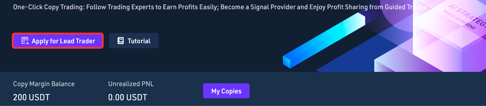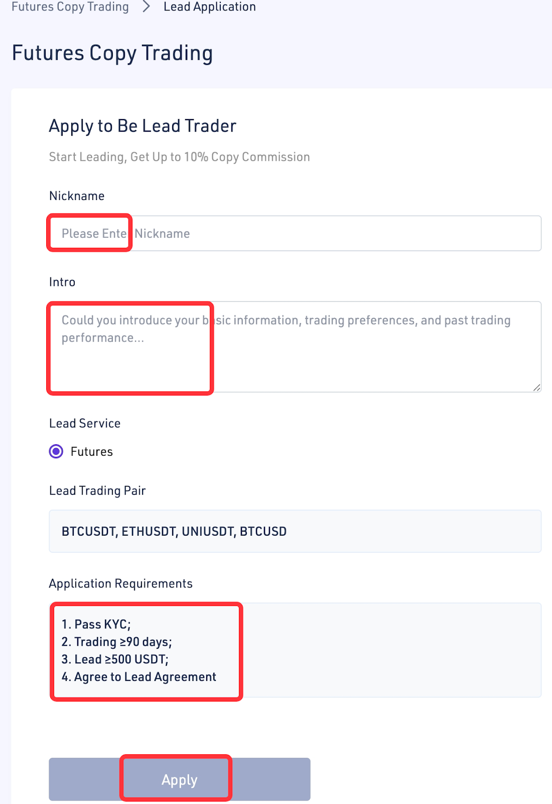 - Click "Apply for Lead Trader" on the Copy Trading page.