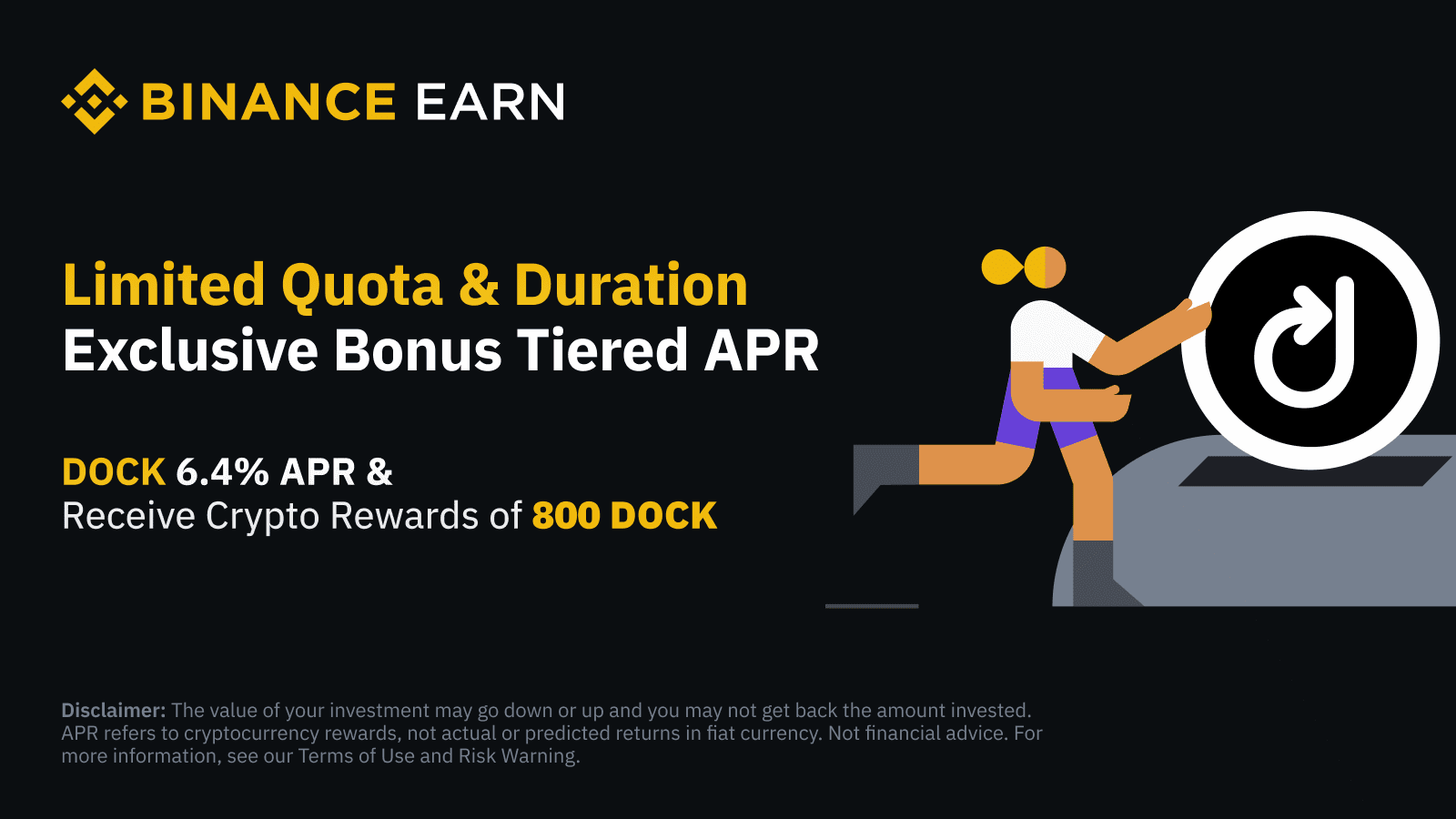 Binance Simple Earn is launching two promotions for DOCK on Simple Earn Flexible Products! Complete subscriptions to DOCK on Simple Earn Flexible Products during the Promotion Period to enjoy a Bonus Tiered APR of 6.4% on top of real-time APRand exclusive rewards.