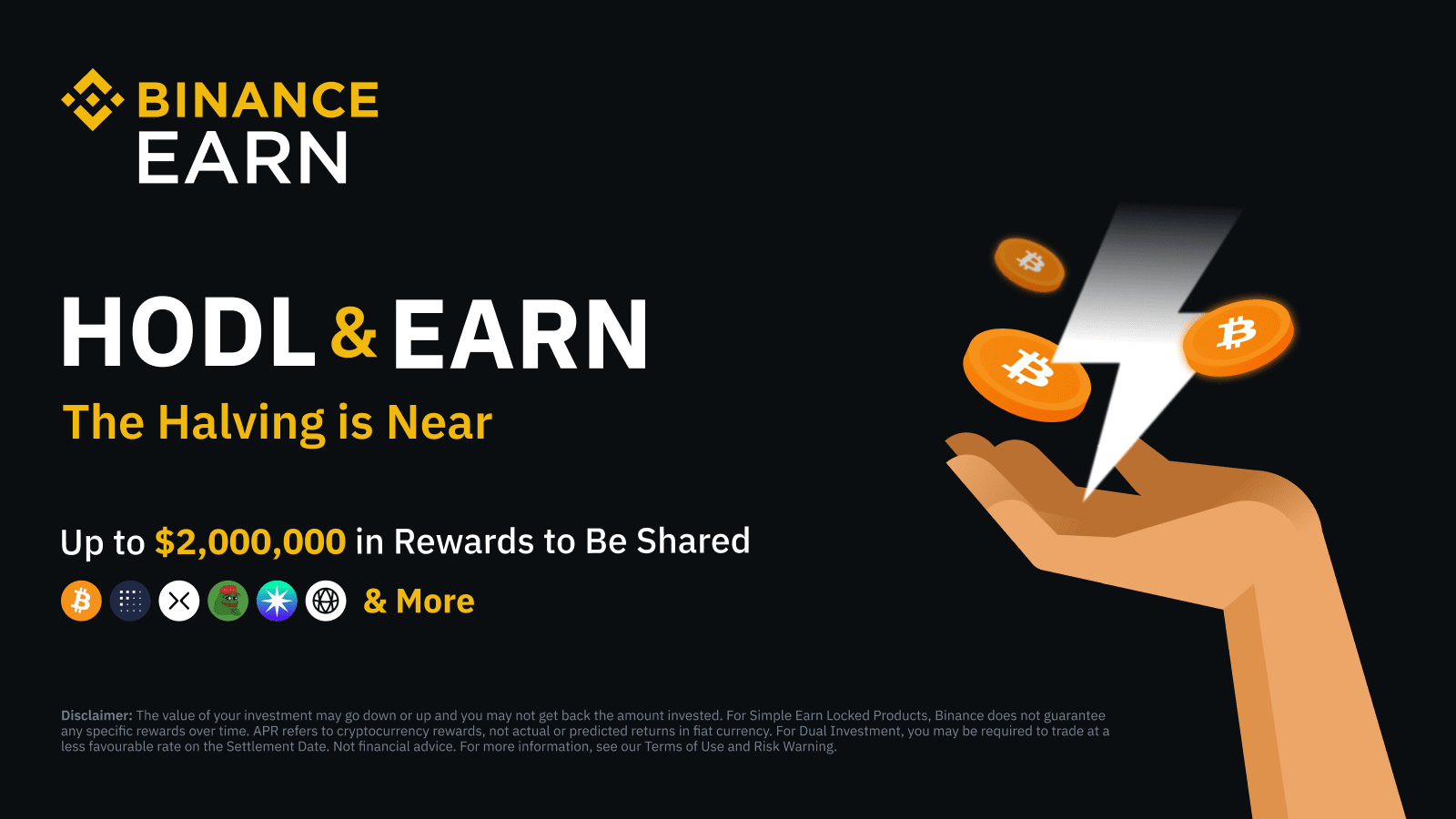 HODL & EARN Until the Next Halving With Binance Earn: Up to $2,000,000 in Rewards to Be Shared!