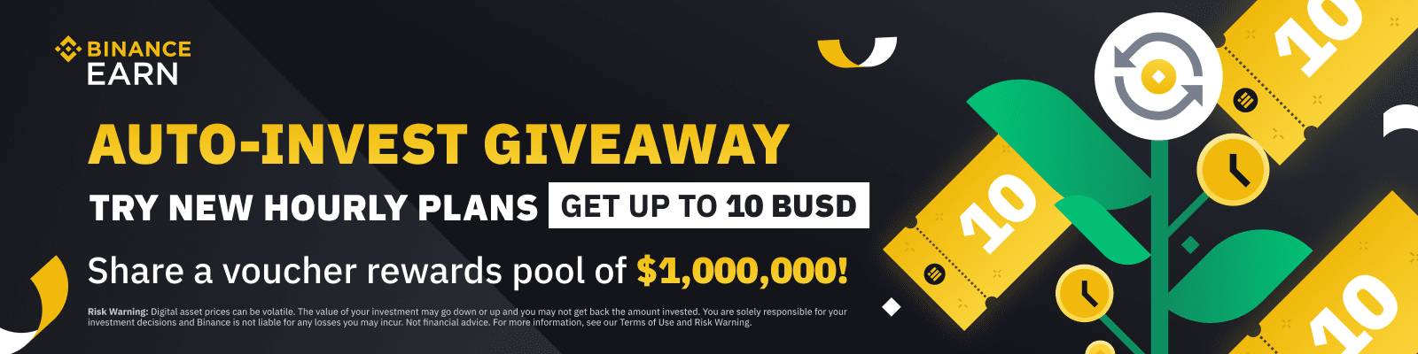 To mark the addition of this new feature, Binance has launched a new giveaway, where first-time Auto-Invest users who subscribe to Auto-Invest hourly plans can share a rewards pool of up to 1,000,000 BUSD in token vouchers.