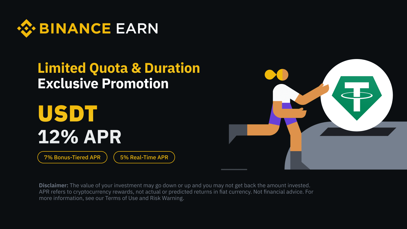 Binance Simple Earn is excited to launch a promotion for USDT on Simple Earn Flexible Products! Complete subscriptions to USDT on Simple Earn Flexible Products during the Promotion Period to enjoy an exclusive Bonus Tiered APR of 7% on top of Real-Time APR rewards (i.e., approximately 5%).