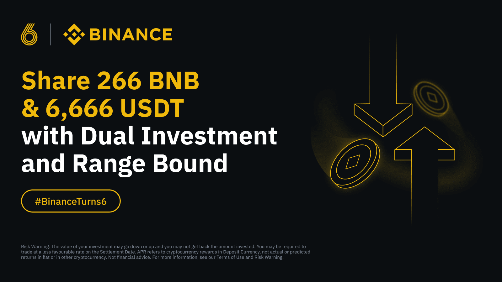 #BinanceTurns6: Subscribe to Dual Investment and Range Bound Products to Share Up to 266 BNB and 6,666 USDT in Rewards!