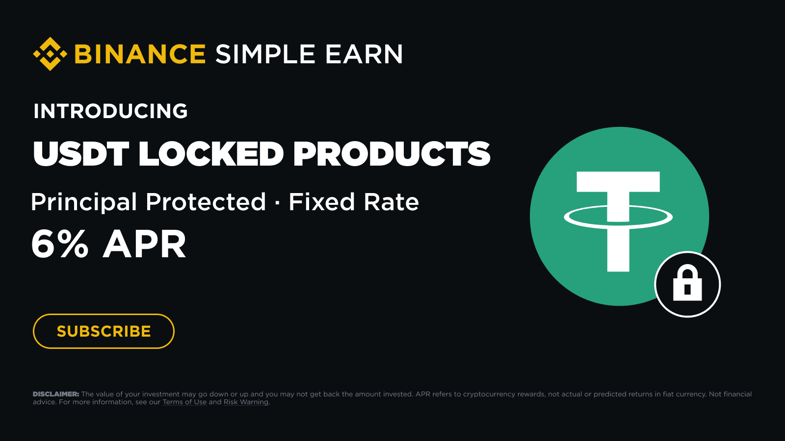 Binance Simple Earn has launched USDT on Locked Products which provides a fixed rate for your deposits. Complete subscriptions to USDT on Simple Earn Locked Products today to enjoy 6% in APR rewards.