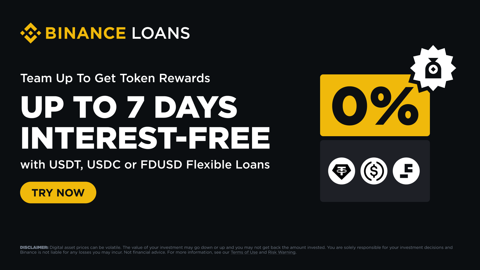 Binance Loans: Team Up and Get Up to 7 Days Interest-Free Borrowing on USDT, FDUSD or USDC Flexible Loans