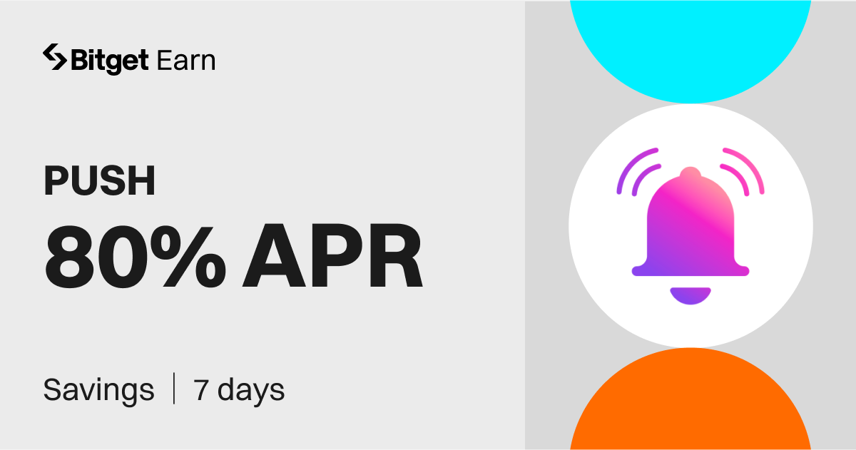 Push Protocol (PUSH) is listed on Savings under Bitget Earn. Subscribe to PUSH on Savings now to enjoy a 80% APR. Supply is limited, so don't miss out!