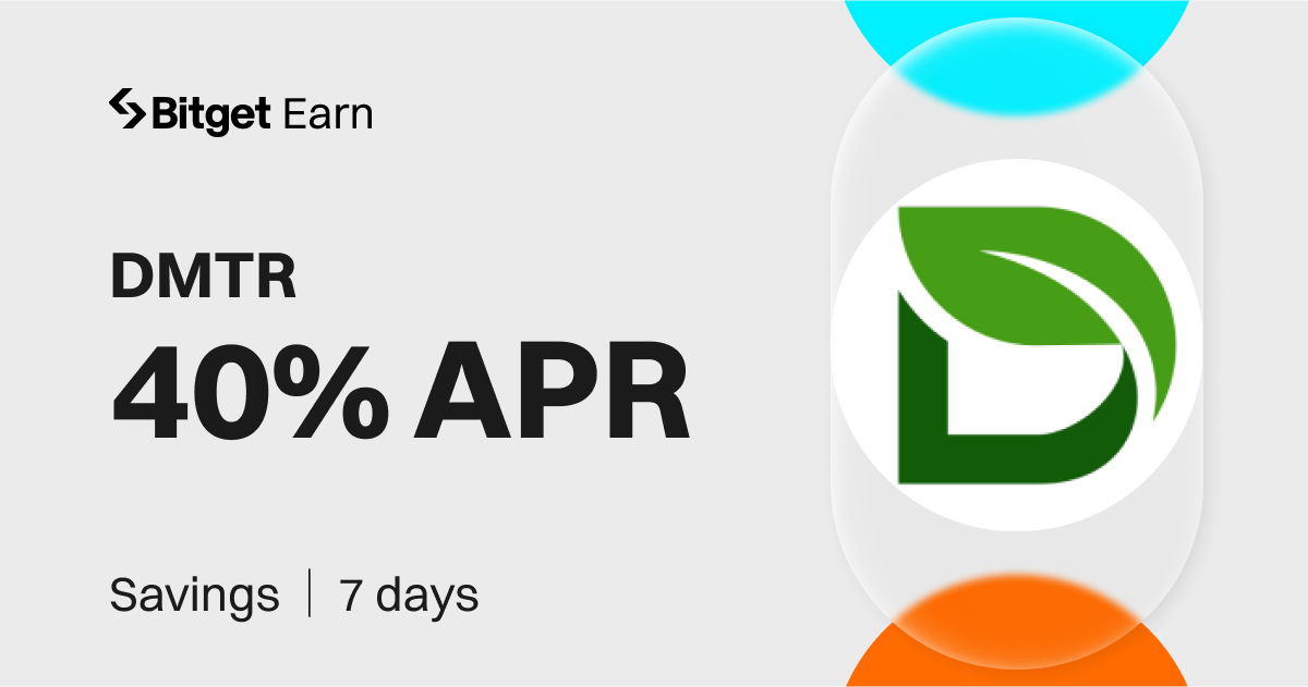 Dimitra (DMTR) is listed on Savings under Bitget Earn. Subscribe to DMTR on Savings now to enjoy a 40% APR. Supply is limited, so don't miss out!