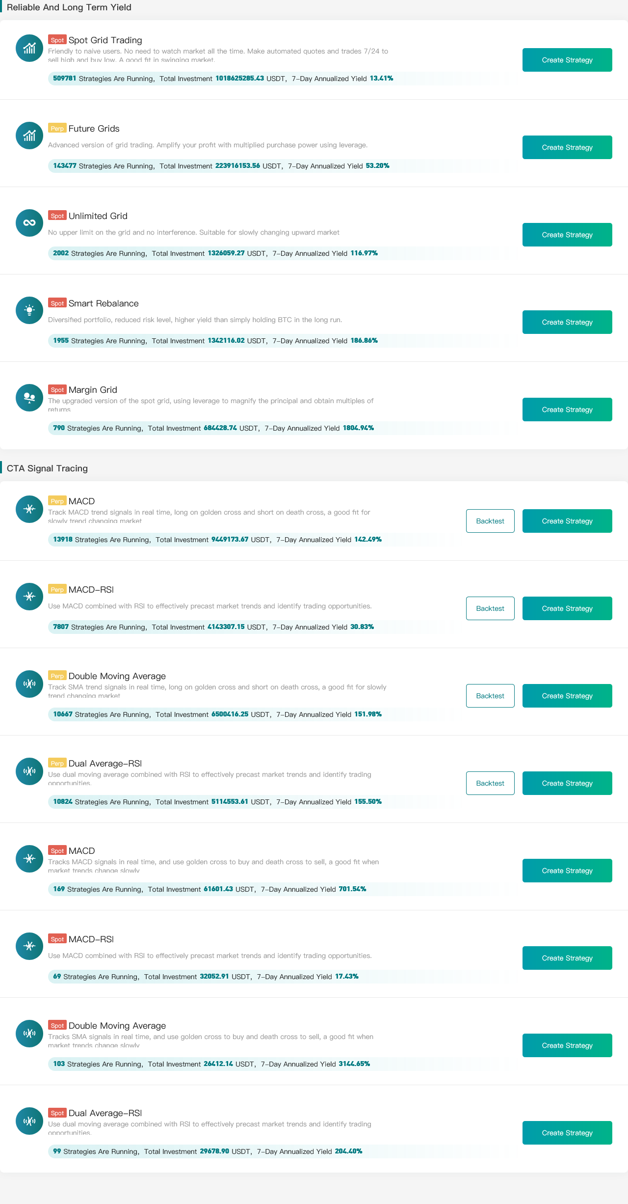 Users can view the performance of strategies created by other users in the leaderboard, and if they think a strategy has a better return than their own, they can copy the strategy's operating parameters to create an individualized version. All strategies are free to copy and 5% of the earnings will be returned to the signaller after the strategy is terminated.
