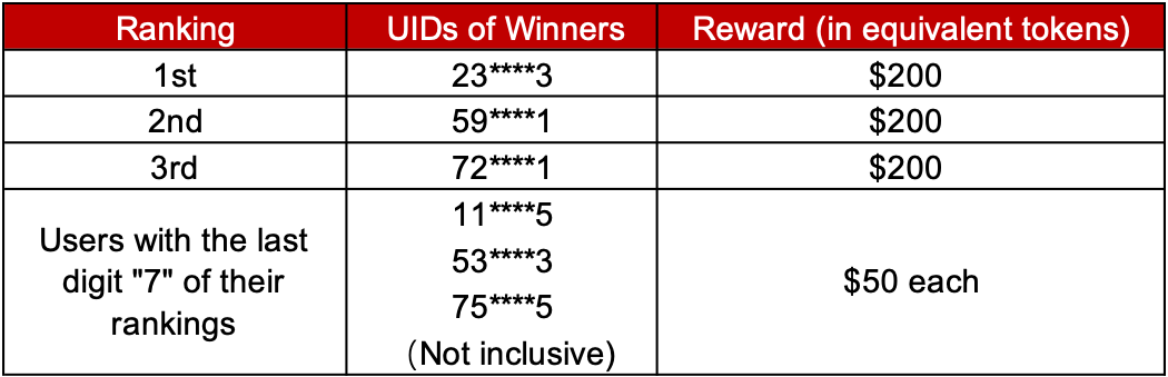 Rewards have been distributed to all winners. View the reward you received at “My Wallets”–“ My Billing Details”.