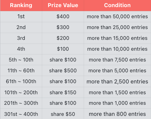 During the event, users will participate in the community Invitation competition, complete corresponding tasks and obtain entry points. According to the final ranking, you will have the opportunity to SHARE $2000 equivalent leveraged token rewards.