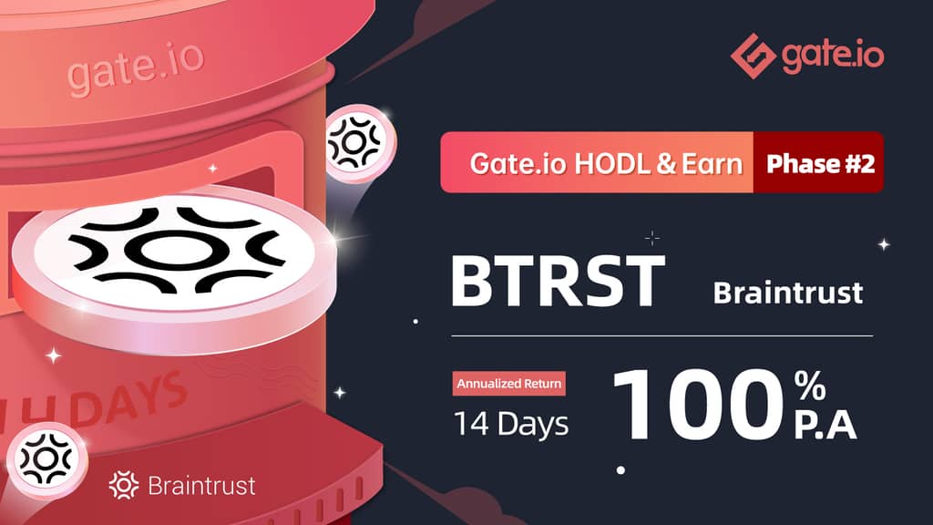 The Lock BTRST & Earn #2(term 14 days) will launch at 8:00 UTC on Mar 12 at Gate.io 's“HODL& Earn” section, with an estimated reward of 100% P.A.