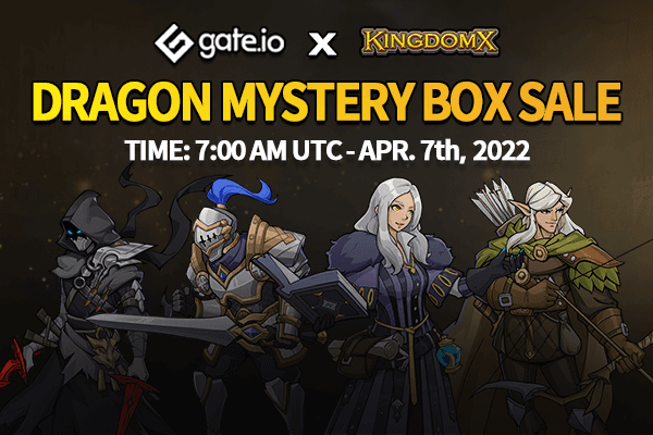 At 7:00 (UTC) 7th April 2022, the KingdomX Mystery Box will go live on the Gate.io platform. There will be a total of 1,000 mystery boxes to be listed and sold at a unit price of 65 USDT. These mystery boxes are limited and therefore, they will be distributed on a first come, first served basis.