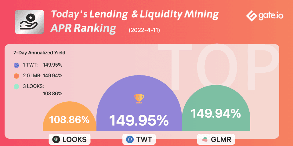 Today, the TWT lending pool has the highest 7-day annualized yield, reaching 149.95%; the GML lending pool has the highest lending ratio, up to 99.98%; the USDT lending pool has the highest total lending volume at 3,164,901.34USDT.