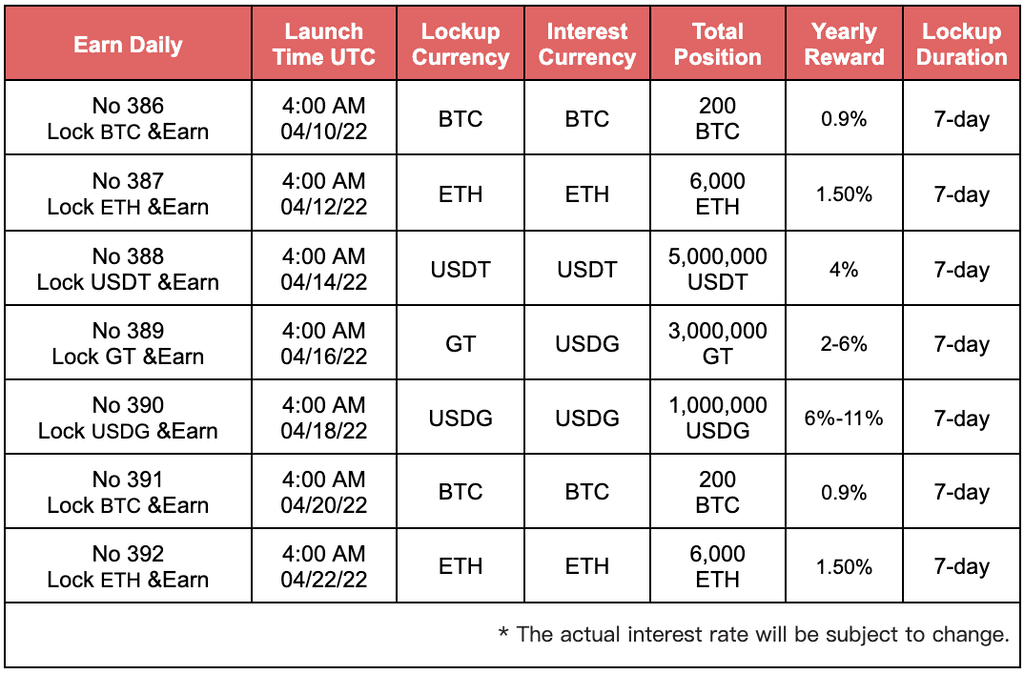 Gate.io Daily HODL & Earn USDT #388 will launch at 4:00 UTC on Apr 14 at Gate.io 's“HODL& Earn”. We are planning to lock 5,000,000 USDT in total for a period of 7 days, with an estimated reward of 4% P.A
