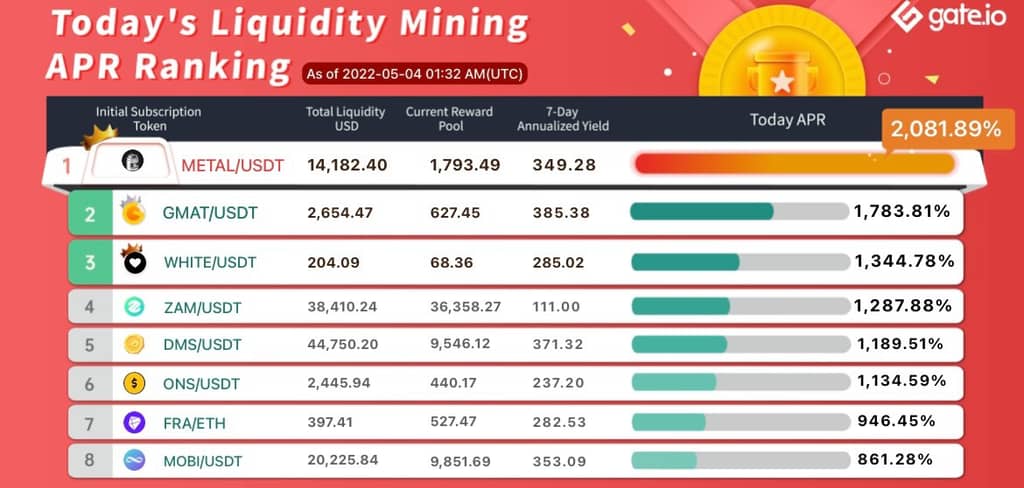 For this kind of liquidity mining pool, 50% of the trading fee will be added into the liquidity bonus pool; Taker and Maker fees are adjusted to 0.3% from now on (Gate.io Points reduction is not supported). Welcome to join them now!