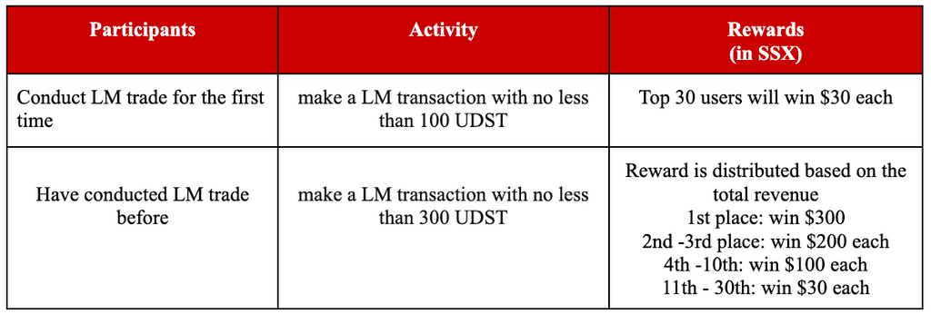 During the event, participants can complete the tasks in the Gleam. We will draw 50 users randomly from all the qualified participants to reward $40 each (SSX).