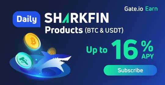 Gate.io will launch a Daily BTC & USDT SharkFin with an annualized yield of 3%~16%. It will be available for subscription starting from 04:00 on June 5th to 04:00 on June 6th UTC.The total position reaches 300 BTC and 8,000,000 USDT, the lock-up period is 7 days, and the price range is $30,000 - $33,000.