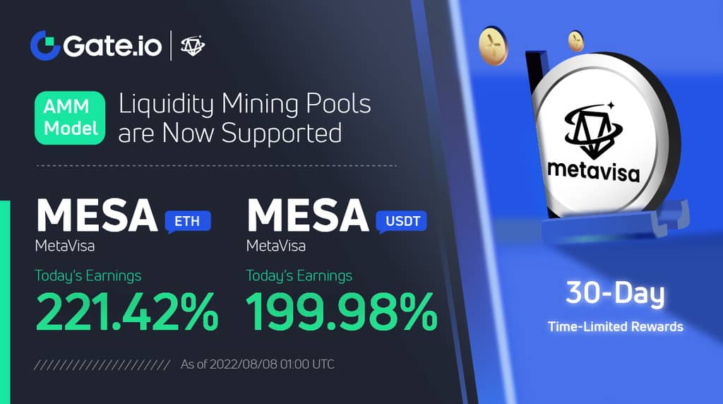 Gate.io Added an Extra Time-Limited Reward of 447,928 MESA to the MetaVisa(MESA) Liquidity Mining Pool: Earn Up to 221.42%