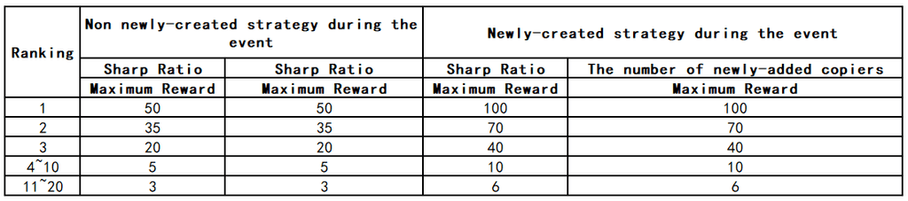 <3> At the end of the campaign, we will rank according to the Sharp Ratio and the number of the newly-added copiers for each strategy.
