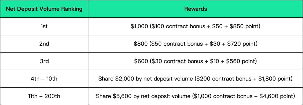 During the event, new users who deposit Gate.io from external platforms will be ranked and share the rewards based on net deposit (deposit - withdrawals), as follows.