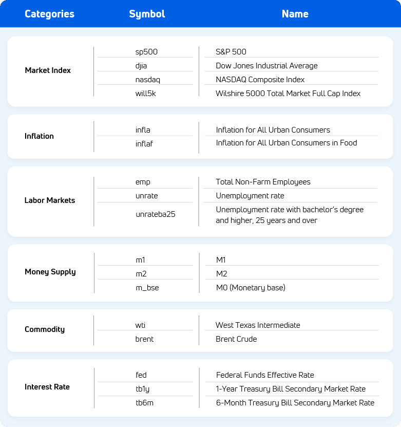 The following US macroeconomic data are selected: