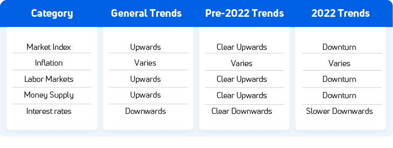 As the table above summarizes, there are very clear trends between Bitcoin returns and most of the variables. However, all the trends shifted in 2022. As mentioned, this could be explained by the lack of data, since there are only 6 months of data in the sample. Or the strong Bear market is to blame for the shift. In general, Bitcoin is behaving close to a risky asset with a growing correlation with the US equity market.