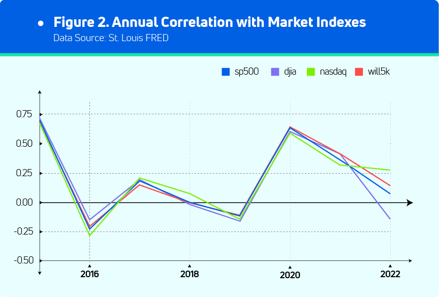 The annual correlation coefficients summary is as follows: