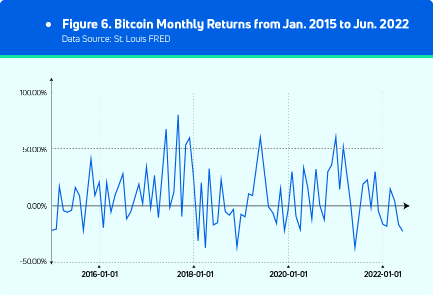 Figure 6 shows the monthly returns of Bitcoin for the past few years, and we will divide the Bull and Bear market as follows:
