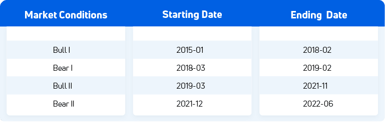 As we mentioned at the beginning of this section, the definition of bull and bear markets is not strict. We made our definitions and based our analysis on them. The results in this section are not to be inferred as investment suggestions.