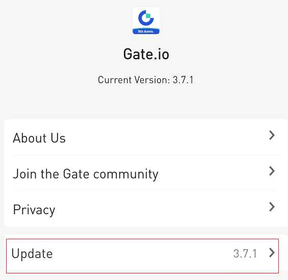 If you have downloaded Gate.io App, please click "Update" button before using it. If you don't have Gate.io App yet, please click the link below to download and update.