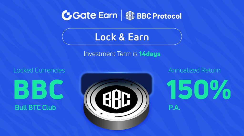 The Lock & Earn BBC will be launched at the "Lock & Earn" of Gate.io HODL & Earn at 2023-2-14 8:00 UTC. Its interest rate is 150% APR and the investment term is 14 days.