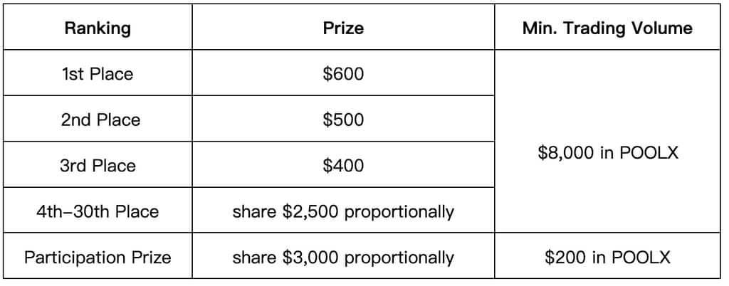 All qualified users based on trading volume can share $7,000 in POOLX.