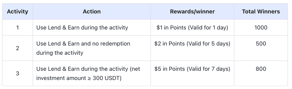 All participants in this airdrop campaign can share $6,000 in Points as long as they lend to earn interest as required. You can join each activity and get the corresponding reward. Multiple rewards are waiting for you. Come and join now!