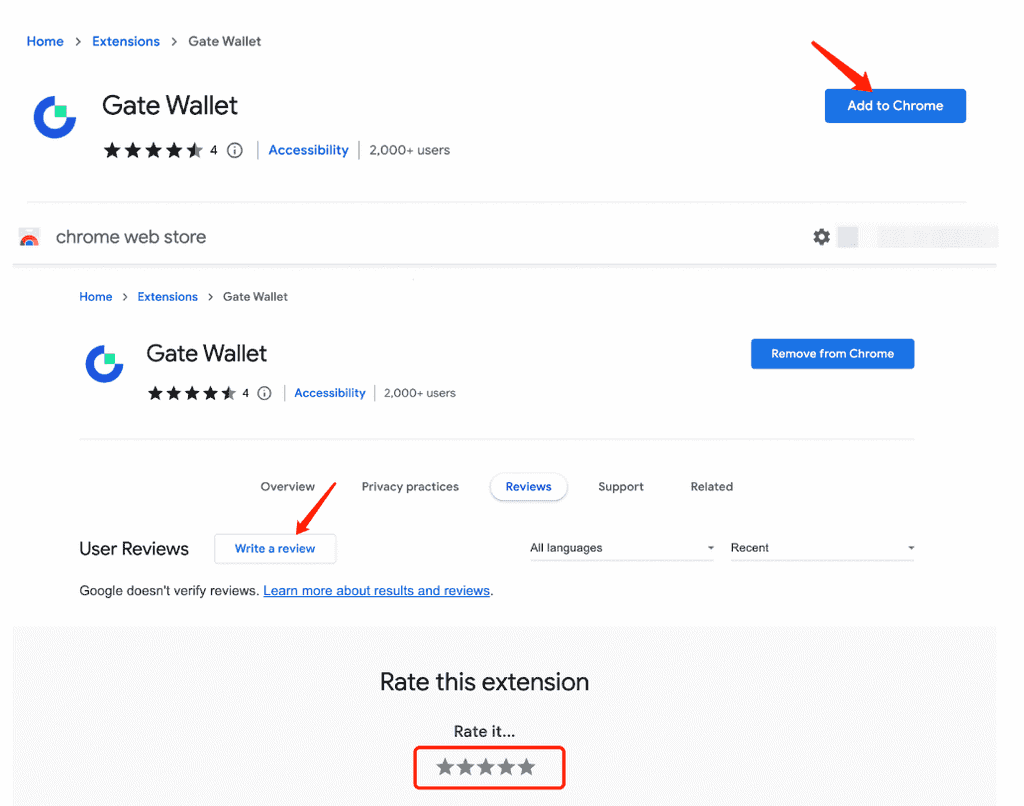 Have you experienced the many updates to the Gate Web3 Wallet Chrome Extension yet? We sincerely invite you to use and experience the Gate Web3 Wallet Chrome Extension! Meanwhile, you’re welcome to write reviews about the Gate Web3 Wallet Chrome Extension in the Chrome Web Store. Once completed, we will send out the review rewards.