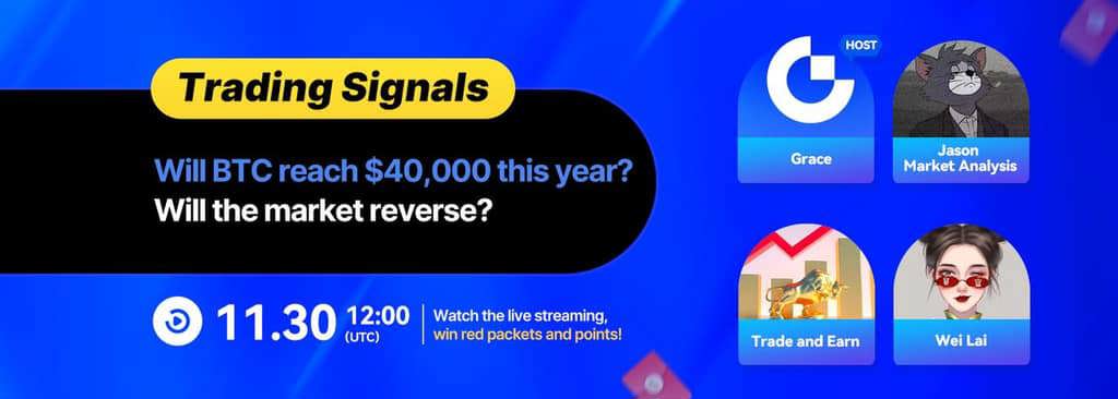 GateLive will hold a market analysis live program Trading Signals at 12:00 (UTC) on November 30. We invite three crypto market analysts to participate in it.