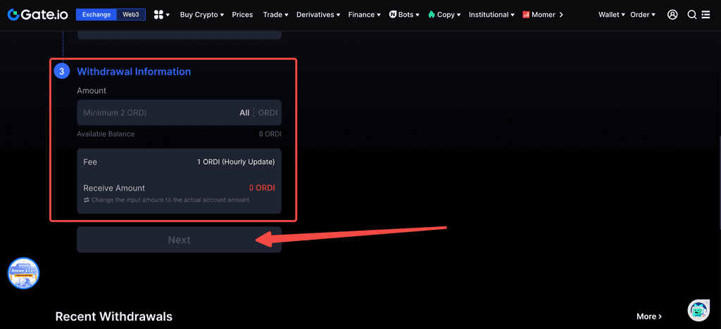 Withdrawing BRC-20 on the Gate.io Mobile App (iOS/Android)