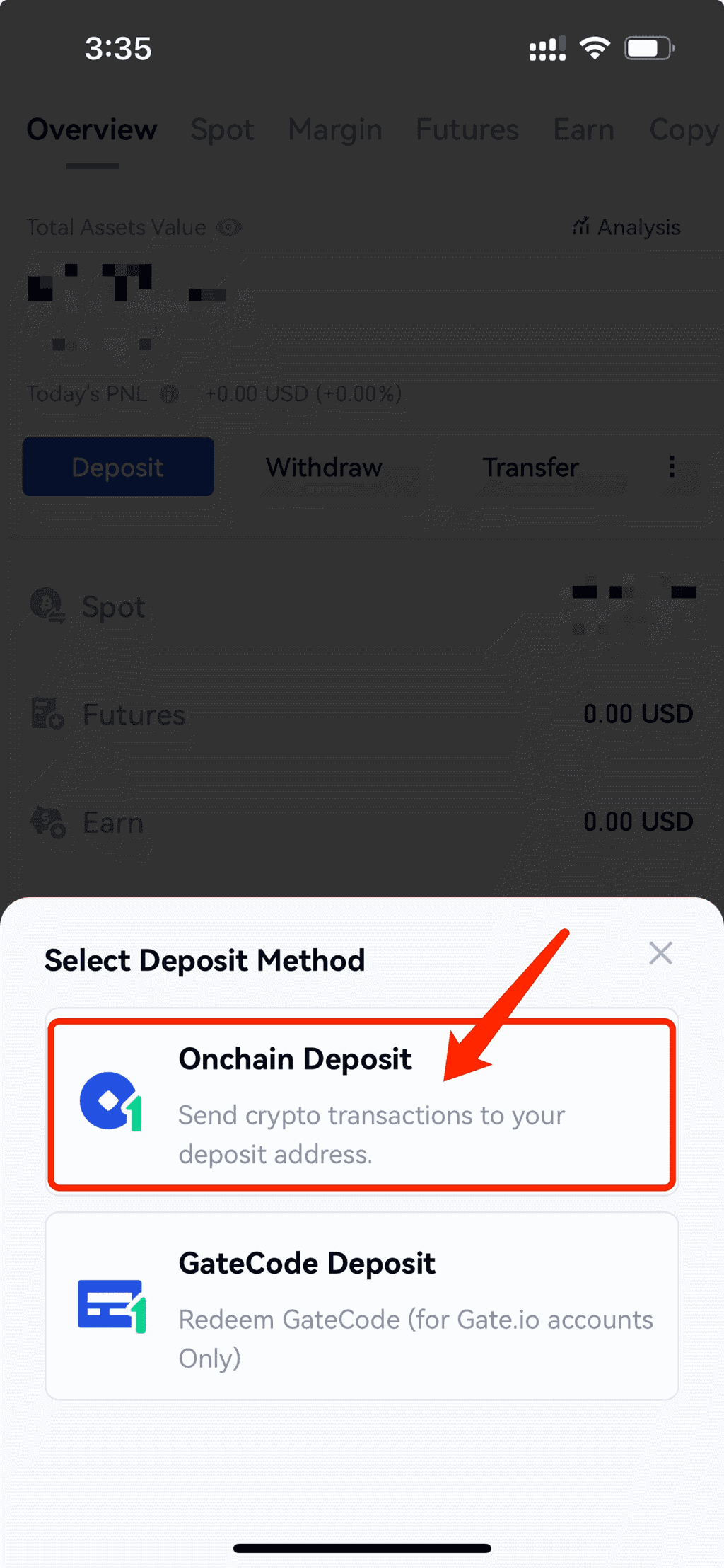 Depositing BRC-20 on the Gate.io Mobile App (iOS/Android)