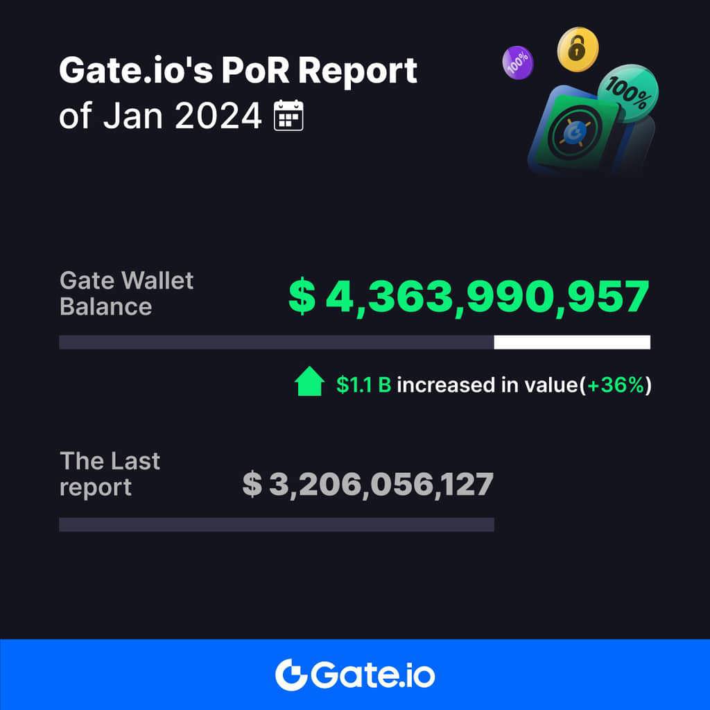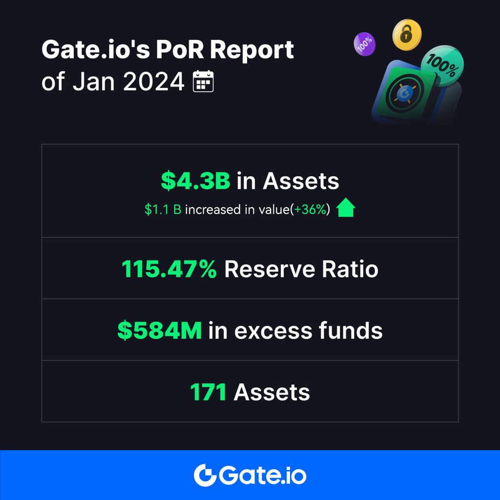 This year, we significantly advanced our Proof of Reserve (PoR) program by implementing Zero-Knowledge Proof technology (zk-SNARKs). Gate.io has been utilizing the Merkle Tree PoR approach since 2020, regularly presenting users with independently verifiable reserve amounts and ratios to ensure the security of their funds. In January 2024, we successfully passed an extensive security audit by Hacken, with our current wallet balance holding $4.3 billion in digital assets and a reserve ratio of 115.47%, indicating an excess deposit of $584 million.