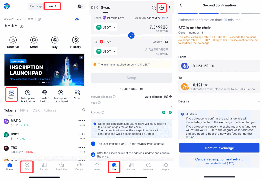 ##Welcome to experience:⭐️ Web: https://www.gate.io/web3/swap