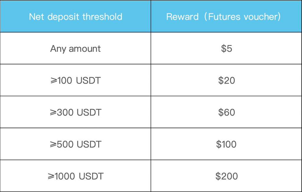 ###📌Activity 1: Register to receive a $ 20 reward!During the event, new users who register and complete KYC2 verification will receive a $20 in futures voucher. The offer is limited to the first 2000 qualified newcomers. First come, first served!