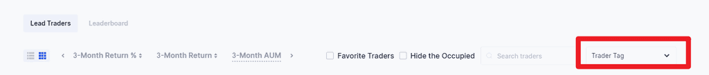 You can click "Lead Traders"——“Trader Tag”, choose any tag, and then view traders who carry this tag.