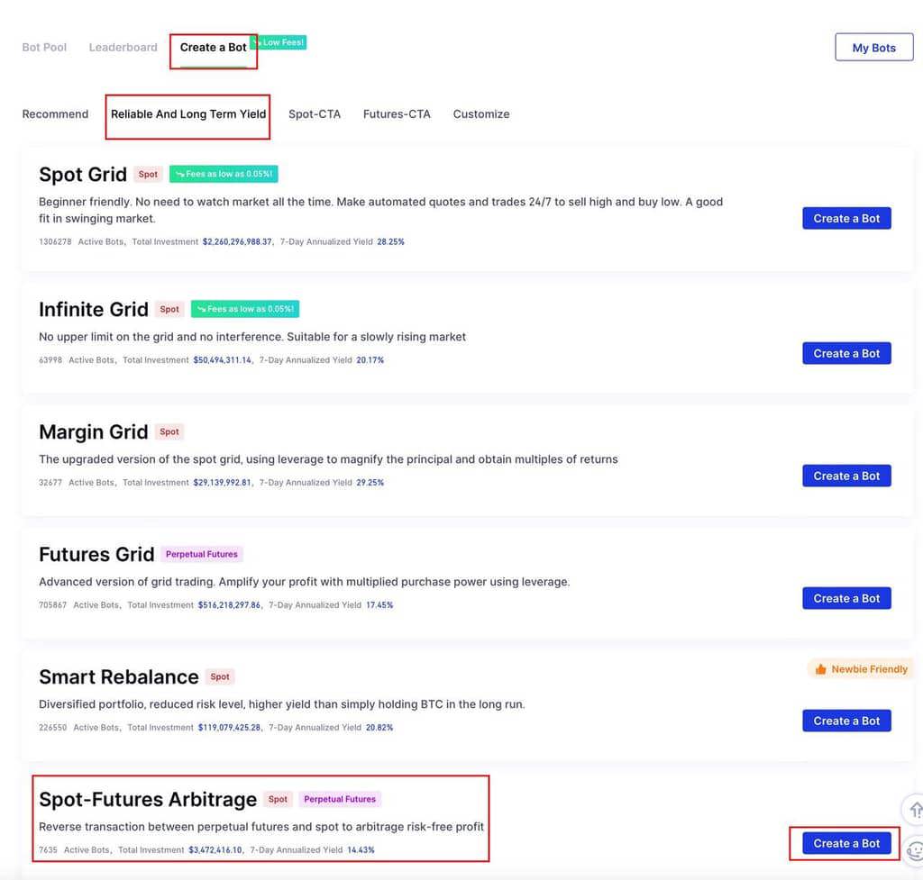 WEB:Bots—Bot Pool—Create a Bot—Reliable And Long Term Yield—Spot-Futures Arbitrage—Create a Bot