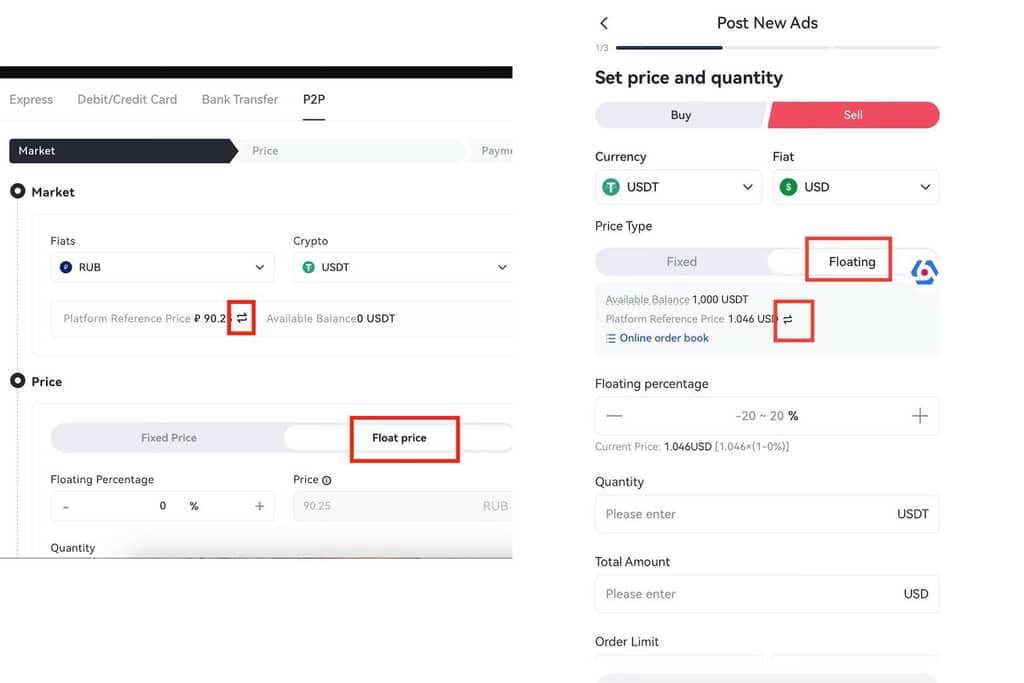 - On the other hand, the floating price will fluctuate with the reference price, with pricing that refreshes every 5 minutes. For example, if you want to buy the asset at a lower price, you can set up an ad with a floating price margin of 10% (pricing formula: 72 x 90% = 63).*The highest floating percentage you can set is 20%.
