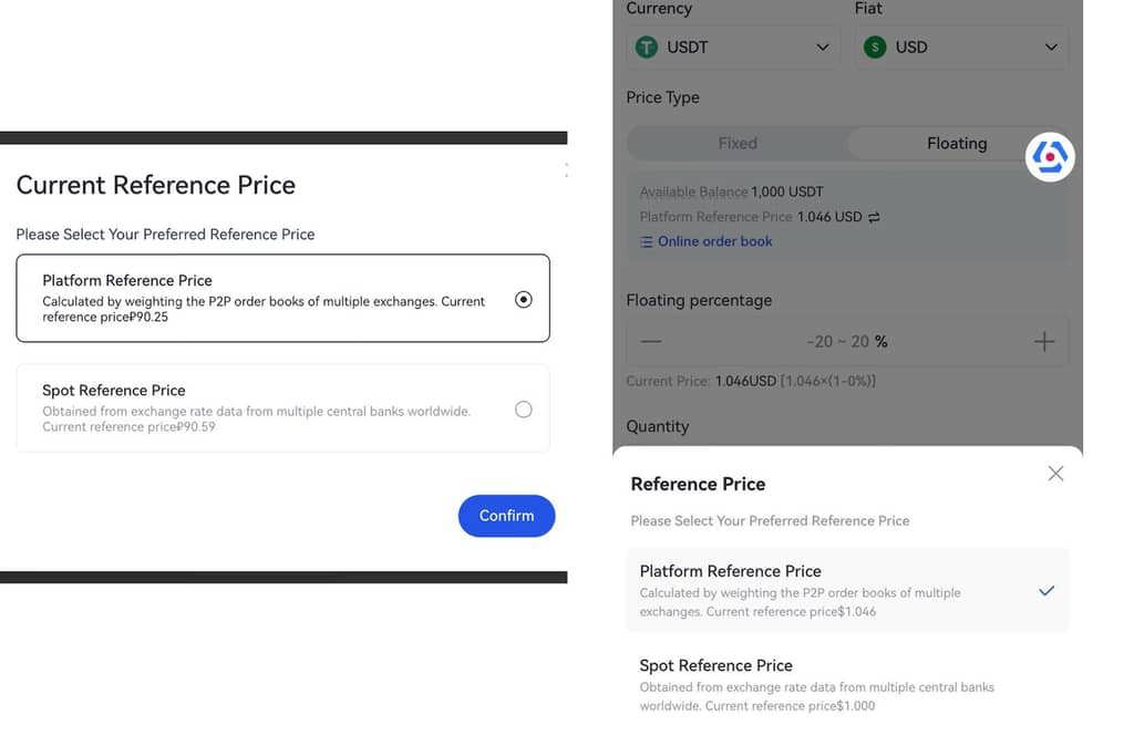 We're glad to announce that we have enabled two reference prices for the floating price function for P2P ads. With this new change, merchants can choose the reference price based on their needs and maximum the profits.