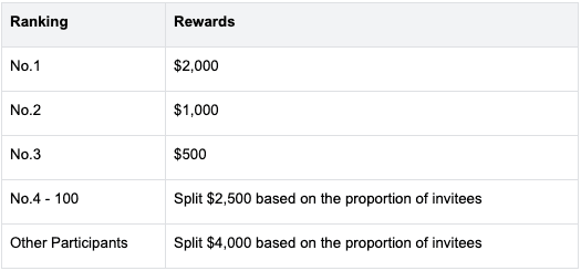 🎁** Reward 2: Invite New Users to Share $10,000**During the event, users who invite new users to register, complete identity verification, and sign up for the activity will share a prize pool of $10,000 based on the number of invitees.
