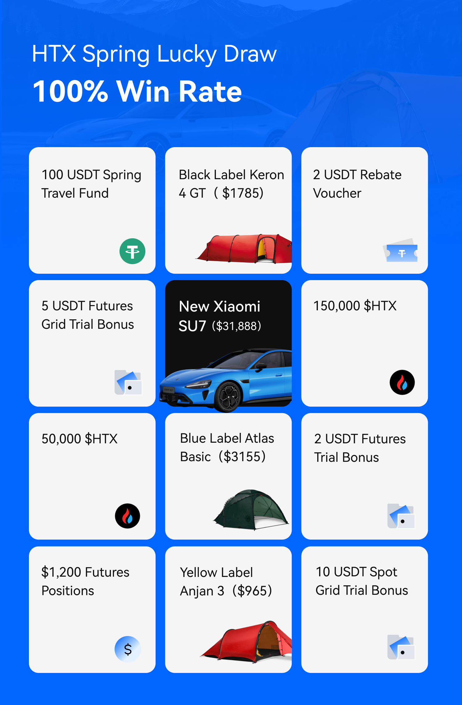 - Physical prizes, such as the new Xiaomi SU7 and Hilleberg luxury tents, will be distributed as $HTX tokens of equivalent value. Rewards will be credited to your HTX account within 14 working days after the event ends. If winners have not received their rewards after 14 working days, please contact our 24/7 online Customer Support or email [email protected] for assistance.