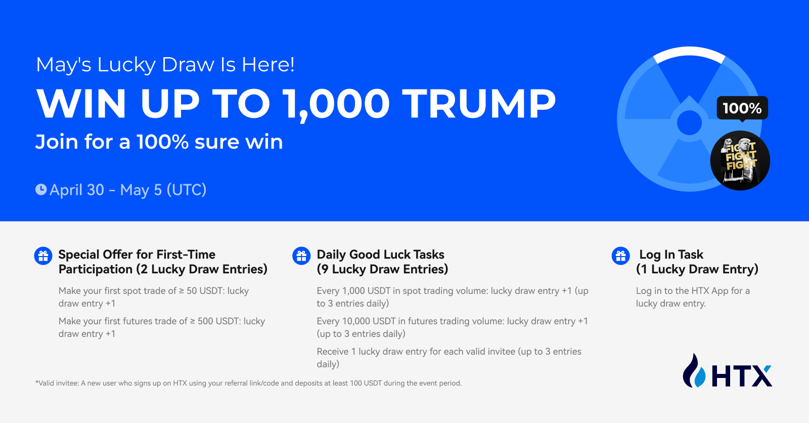 Guaranteed Win! Get up to 1,000 $TRUMP in HTX's May Lucky Draw!