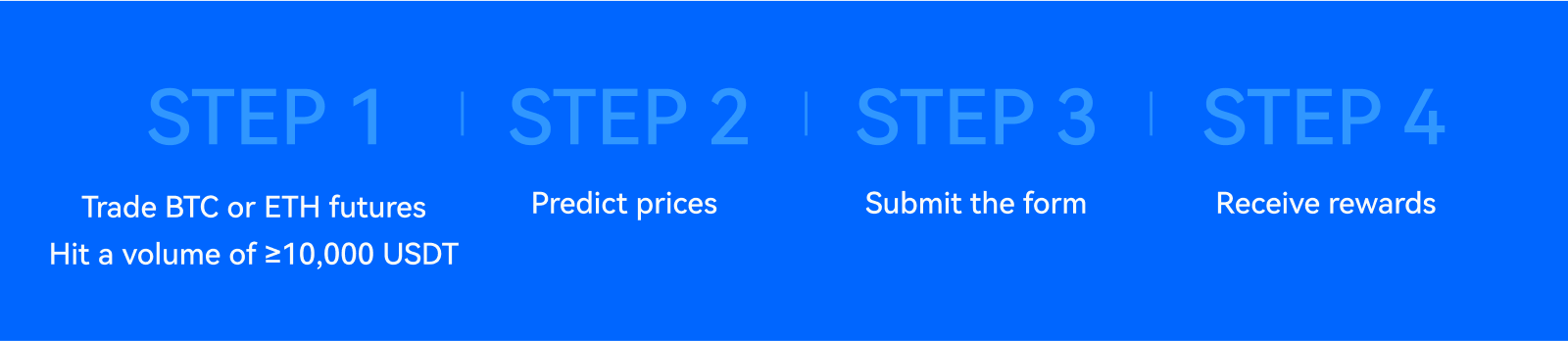 Trade BTCUSDT or ETHUSDT futures and reach a cumulative futures trading volume of ≥10,000 USDT during the event period to become eligible for the prediction.